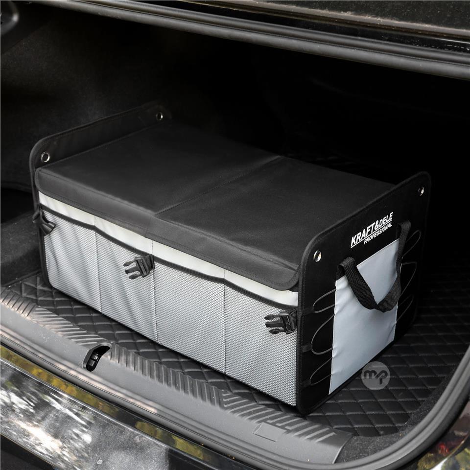 The KD11881 car organizer from KRAFT&DELE is an essential accessory for any car, helping you keep your trunk organized. Its foldable design allows it to be easily folded in half or completely, making it easy to store when not in use. The spacious interior allows for convenient storage of groceries, tools, car accessories, and camping gear.