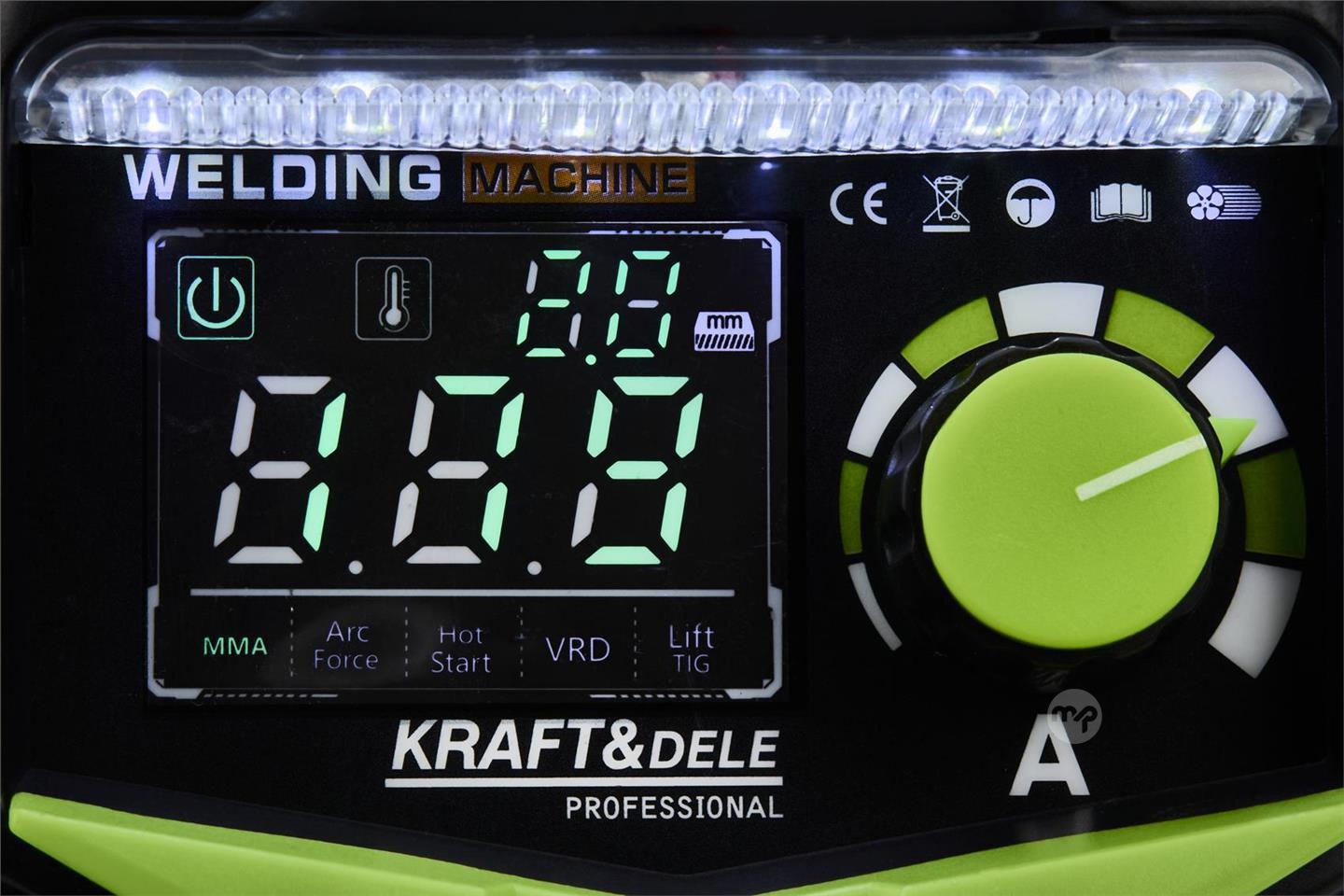 The modern inverter welder by Kraft&Dele, model KD1784 , is a device designed for arc welding with a coated electrode. Coated electrode welding is an arc welding method using a consumable metal electrode covered with a flux coating.