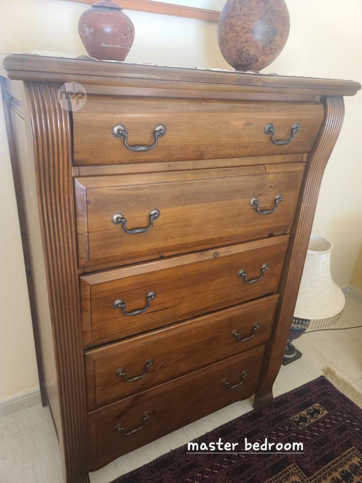 Double Bedroom comprising Super King size 220 x 220cm bed, His & Her Wardrobe, dressing table with drawers and very large mirror, Chest of drawers, 2 x bedside tables with lamps.