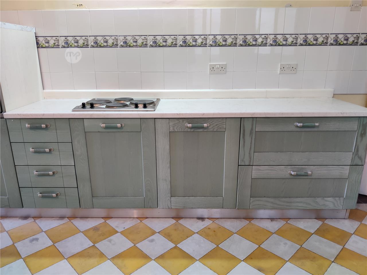 Fitted kitchen in sage green finish, in very good condition.