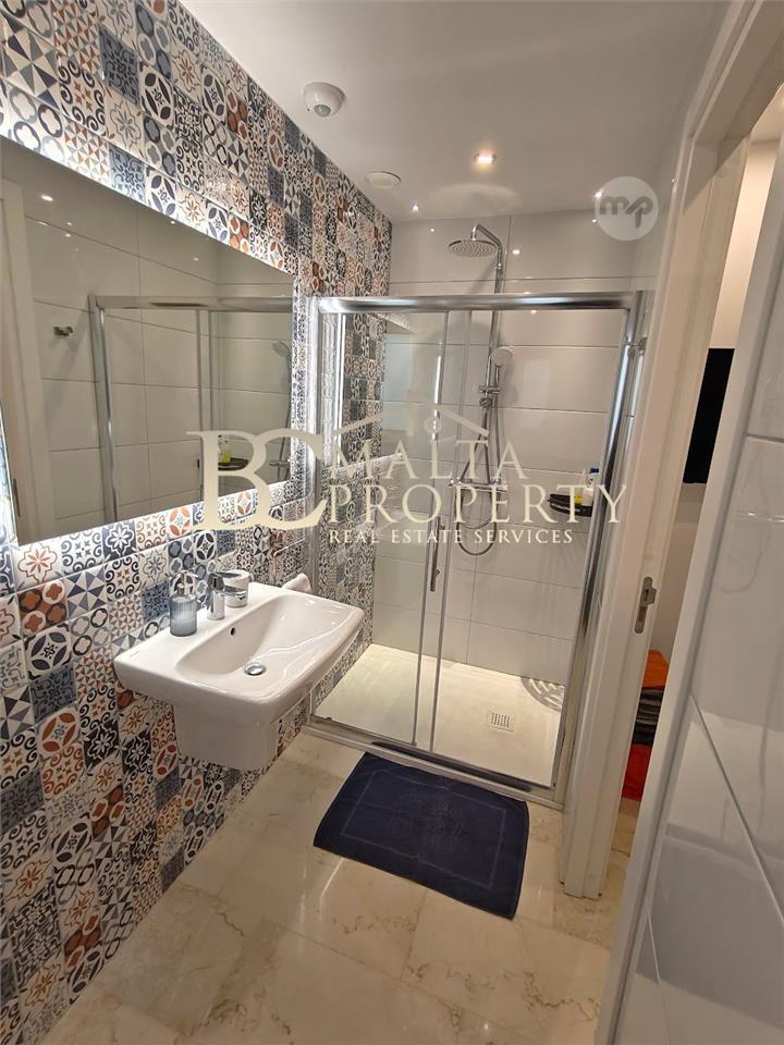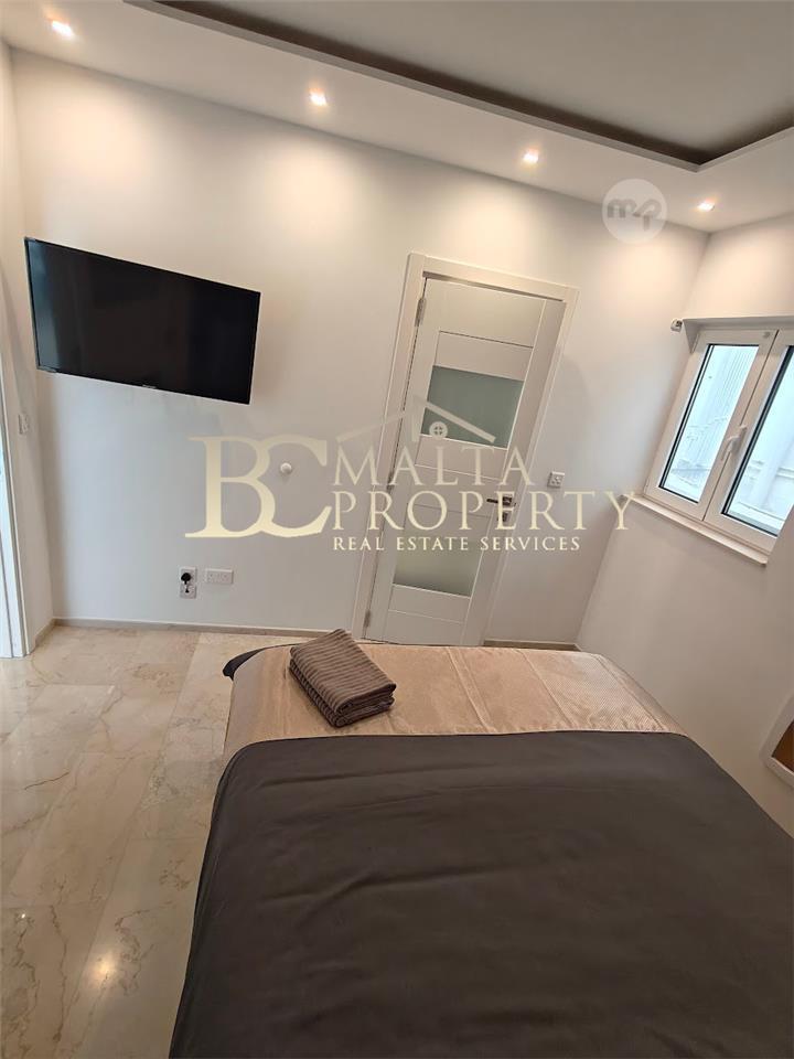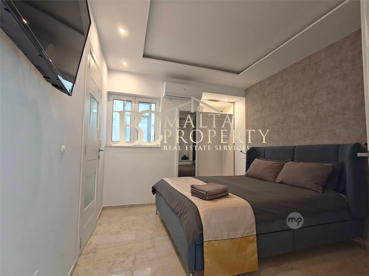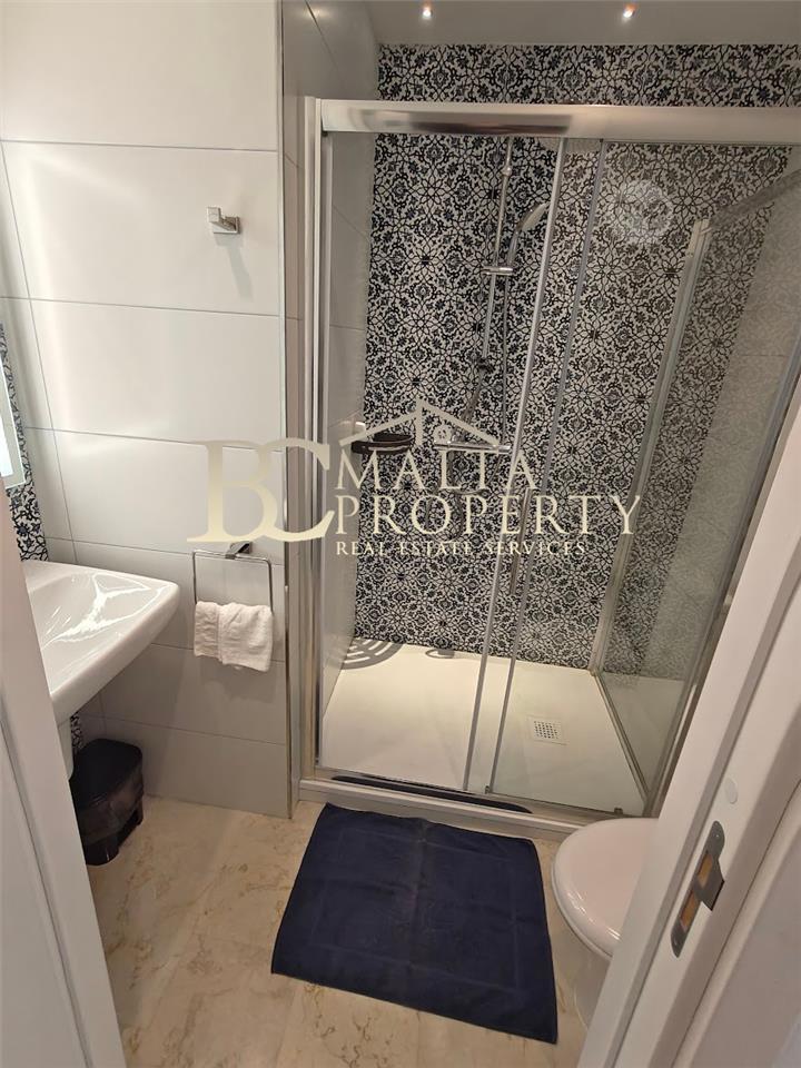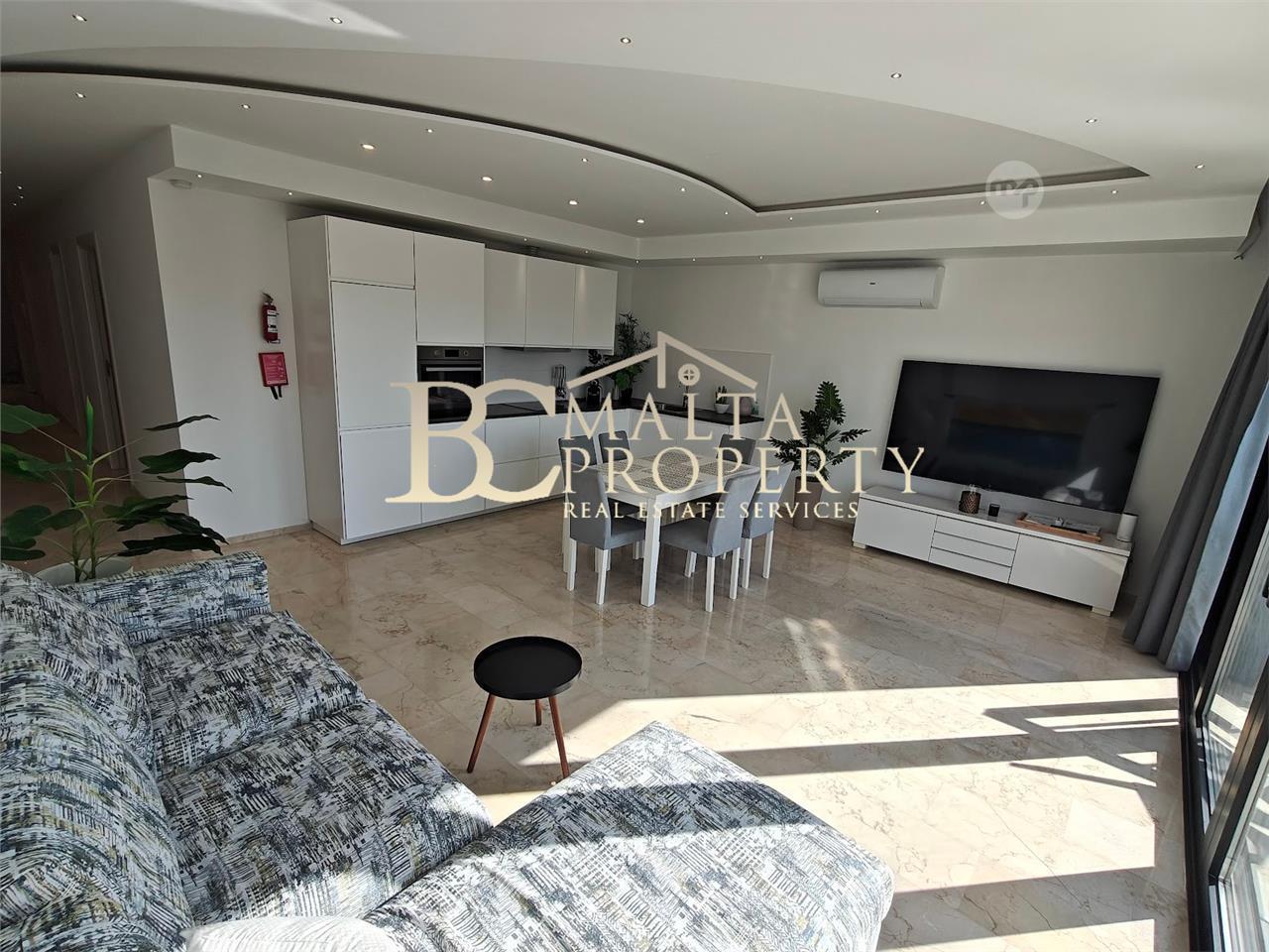 A 5th floor newly highly furnished and equipped 2 double bedroom / 3 bathroom (2 of which ensuite) apartment in a smart block with lift situated in an excellent area in Spinola with sea views over the Spinola and Balluta Bay.