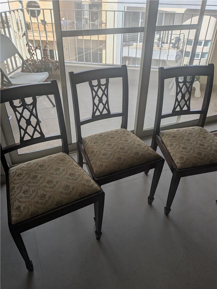 6 Reproduction dining chairs. Upholstered in Camilleri Paris Mode fabric