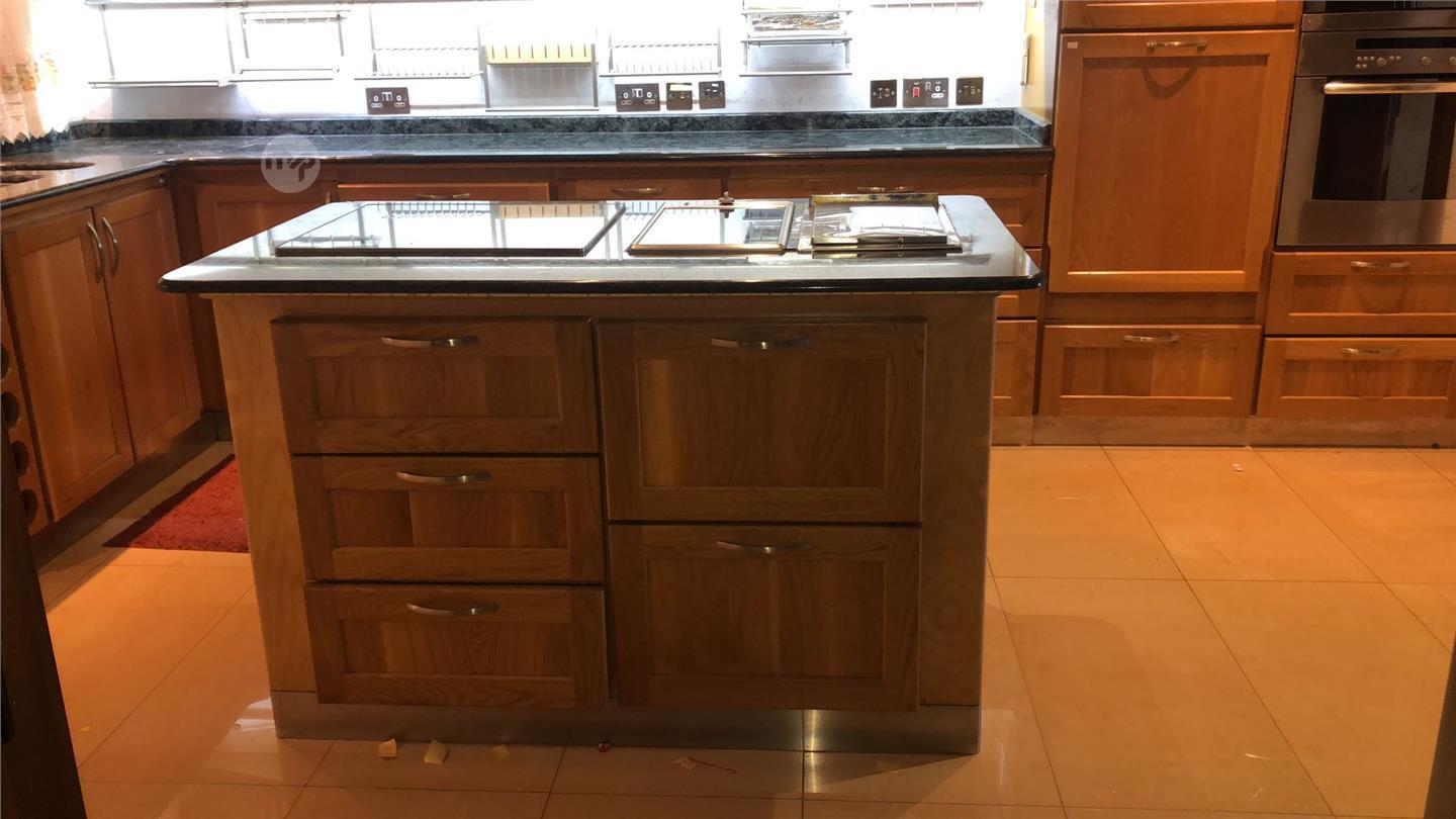 Solid Wood Kitchen with dark granite Worktop and stainless steel Appliances (Dishwasher, oven, Hobs, fryer, Microwave) Island etc. View description