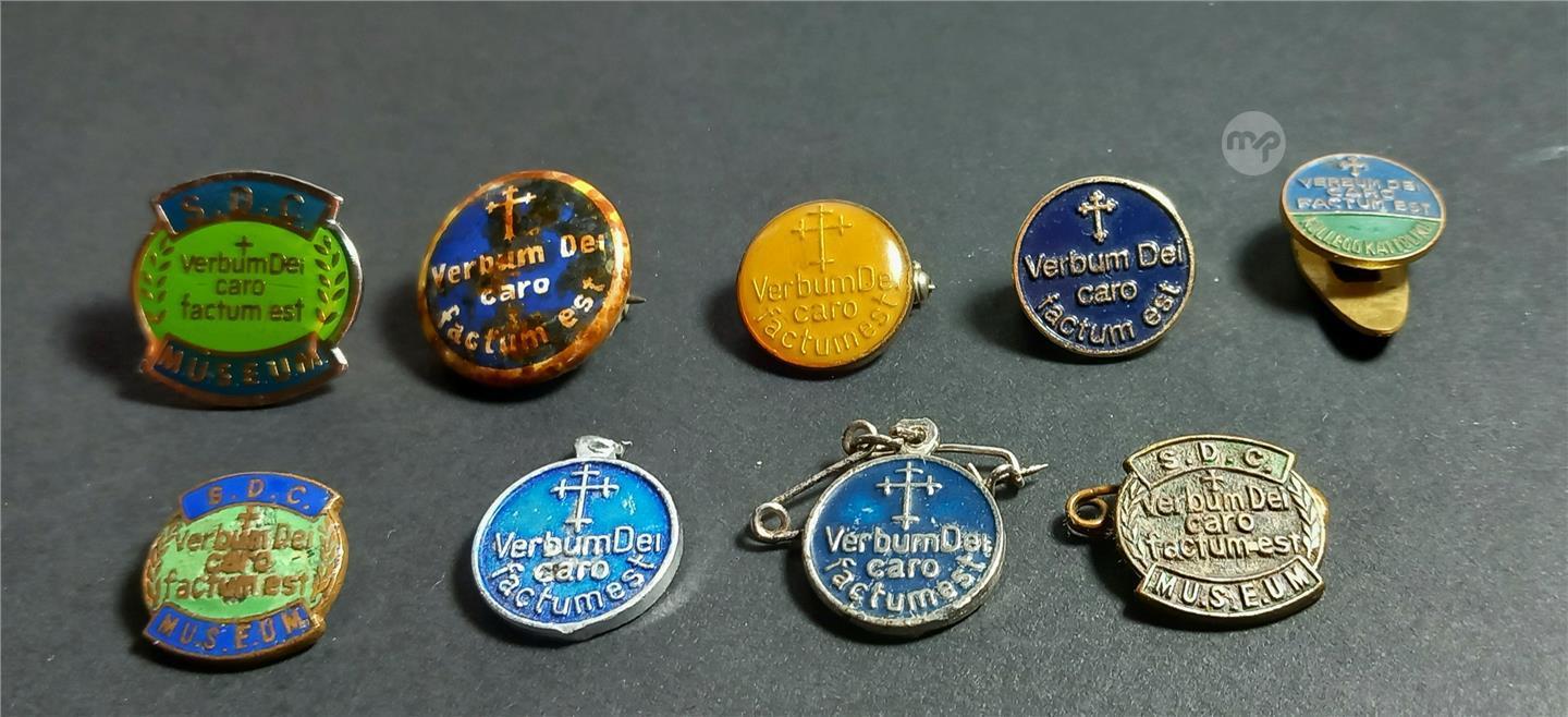 COLLECTION of 9 VINTAGE M.U.S.E.U.M "VERBUM DEI CARO FACTUM EST" BADGES - ANY OFFERS?