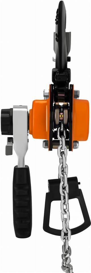 ✅ PRECISE CONTROL. The control lever allows for precise load maneuvering, even on difficult terrain. The integrated ratchet mechanism guarantees complete control during lifting and lowering.