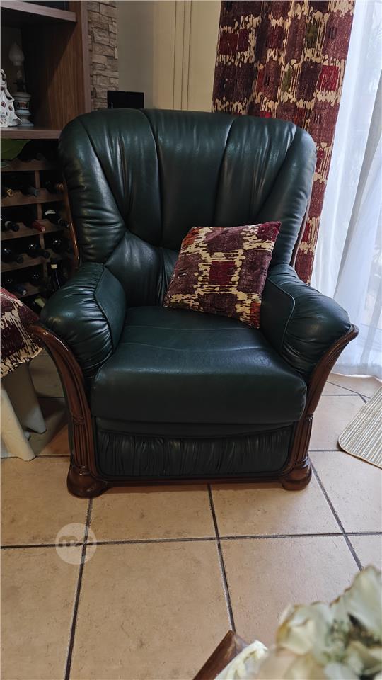 An Opportunity not to be Missed - Classic style 3 seater Sofa & 2 matching Armchairs. Soft Faux Leather material in Olive Green colour still in very good condition. Buyer Must provide own transport (ground floor level).