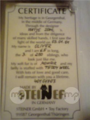 This bear comes with an authentic limited edition certificate attached to the leg.