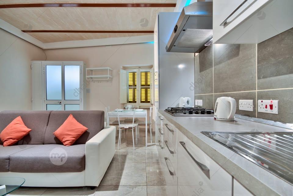 Beautifully renovated 2-bedroom maisonette blending modern finishes with traditional Maltese xorok and high ceilings.