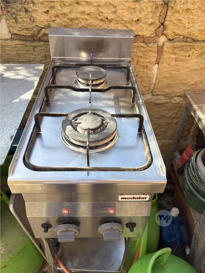 2 burner gas top cooker catering ex restaurant with stainless steel table