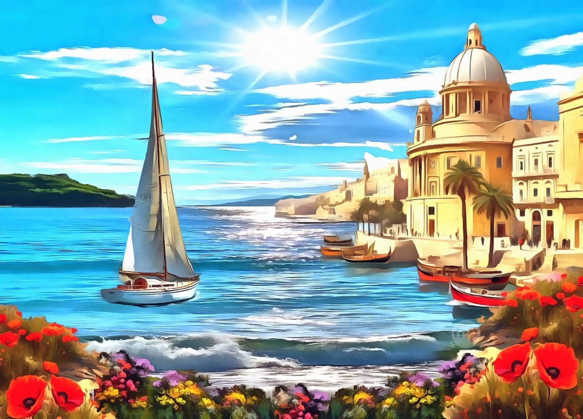 SLIEMA MARINA MALTA ---- ORIGINAL HAND PAINTING OIL ON CANVAS 70X50