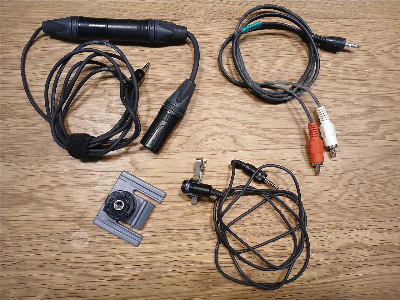 Sony professional radio mic set with cables. Takes 4xAA, fully working. Works with DSLR cameras - hot-shoe mount and Lapel Microphone included.