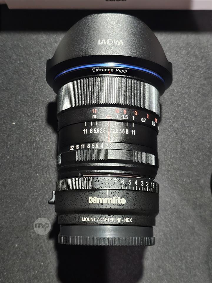 Together with a mount adaptor NF-NEX from Nikon to Sony E-mount. Plus 100mm CPL filter holder. Manual focusing lens and no electronic contacts. Takes beautiful sun stars pictures, suitable for night time sky photography, Indoors and real estate photography.