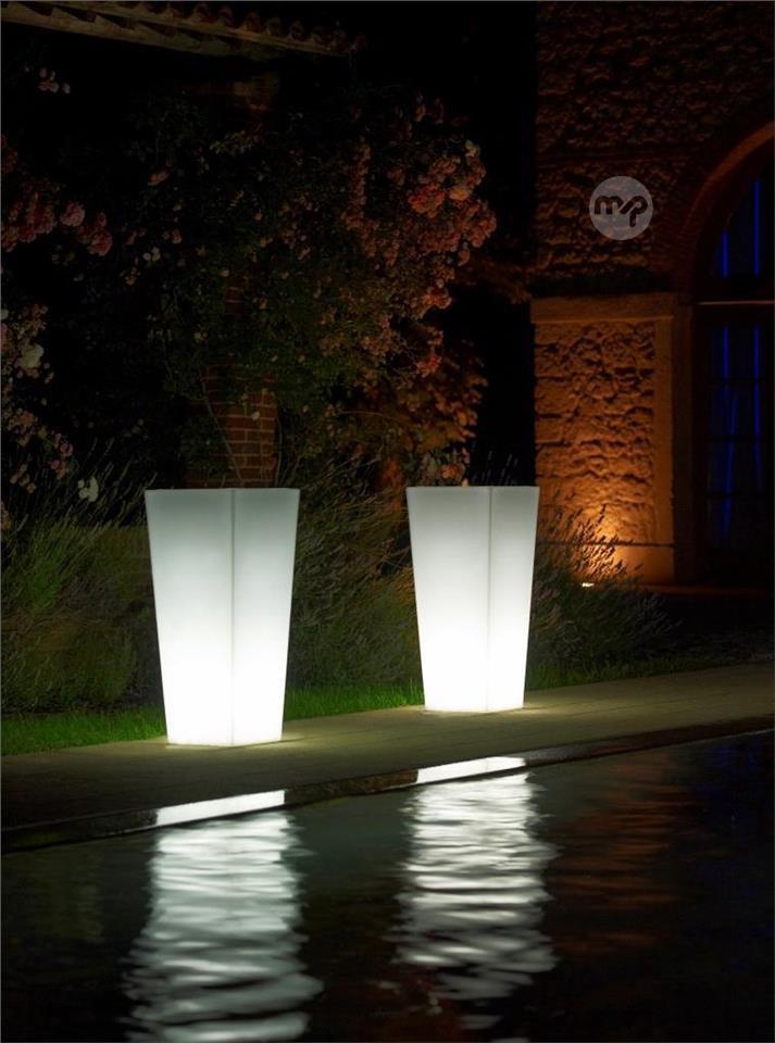 Plant pots with incorporated led bulb, suitable for outdoor use.