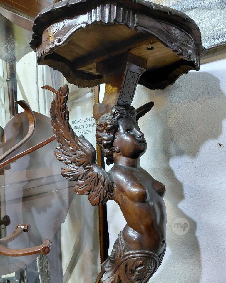 An Antique walnut renaissance angel pedestal Fine Sculpture stand Showing Ange