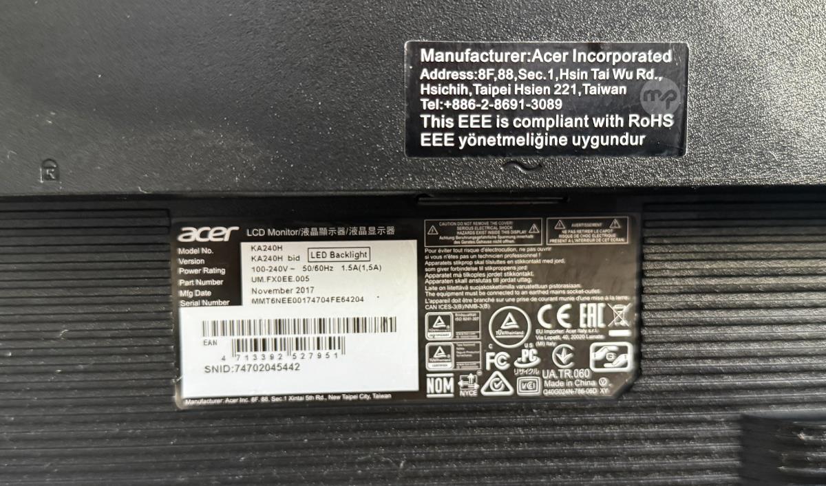 Acer KA240H 24-Inch LCD Monitor. Condition: Used – Very Good (Office Use Only)
