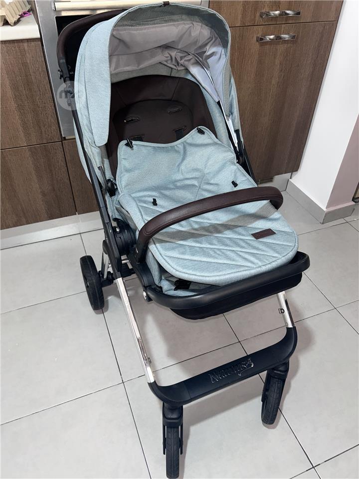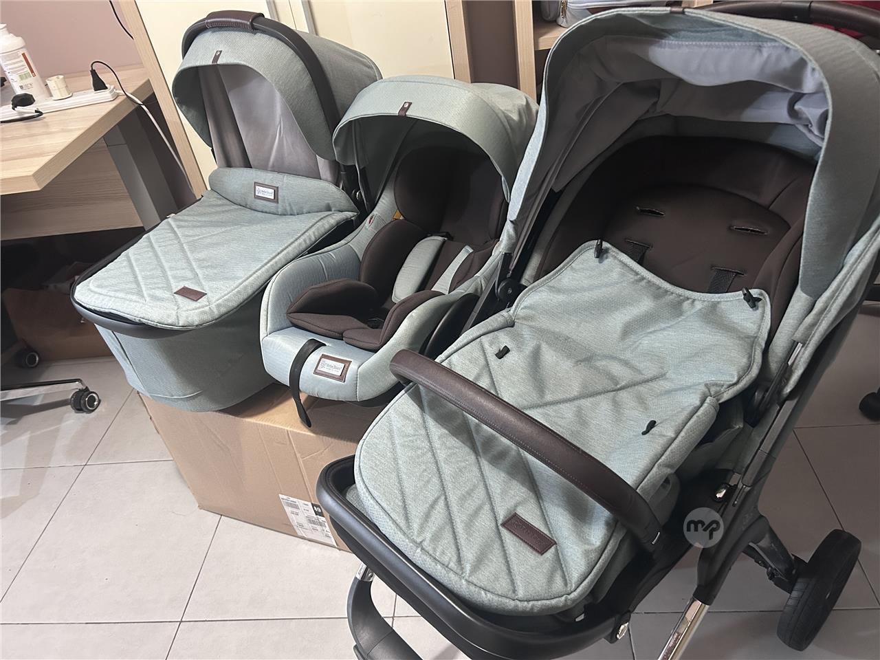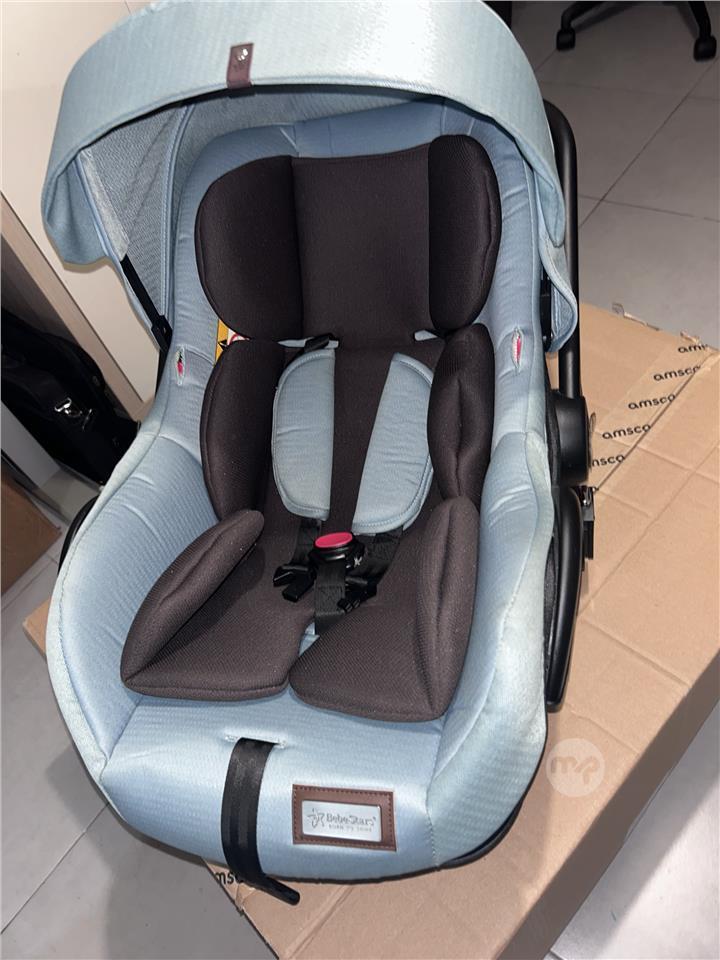 Bebe stars 3 in 1 barely used. Baby cot never used still brand new and baby car seat only used for 1 month. No stains in perfect condition. Comes with rain cover, net and foot muff. Nonsmoking household and no pets around.