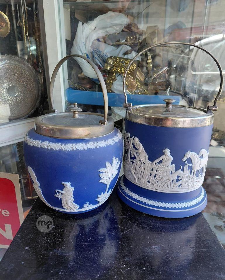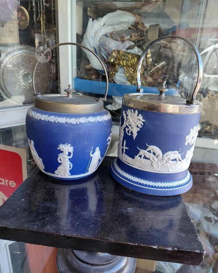 In perfect condition Antique Biscuits barrel Silver plated lids In perfect c