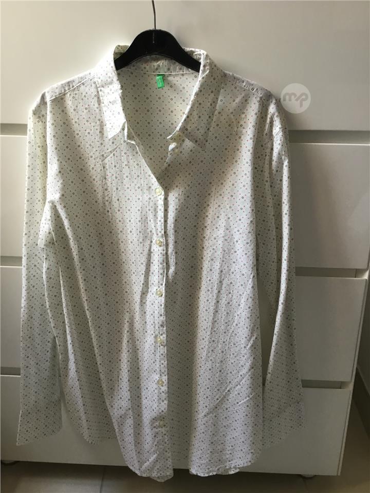Long sleeves Benetton Shirt. White bleu green dots pattern.