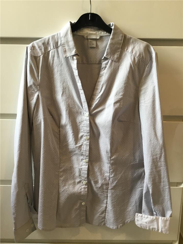 Long sleeves Shirt. Light grey with white dots pattern.