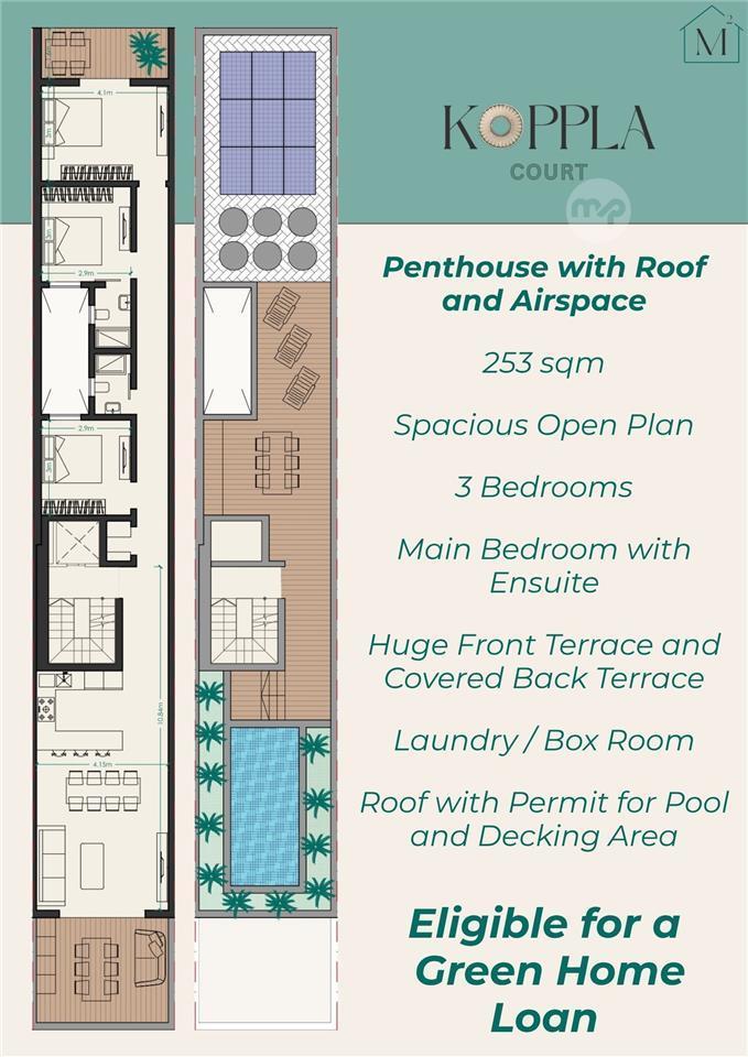 ✅ Spacious outdoor areas. Penthouse with permit for pool.