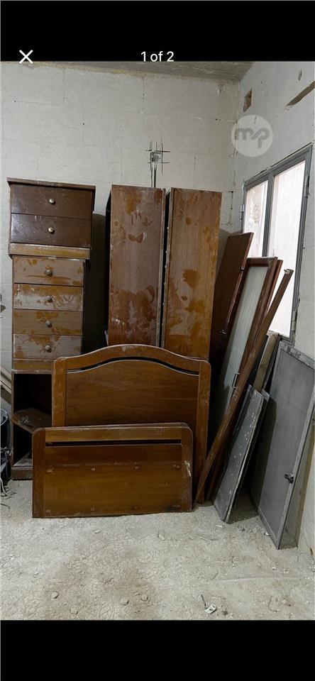 Bedroom completed with 2 single beds without mattress, bed side table, desk, large 6 door wardrobe with drawers & a mirror