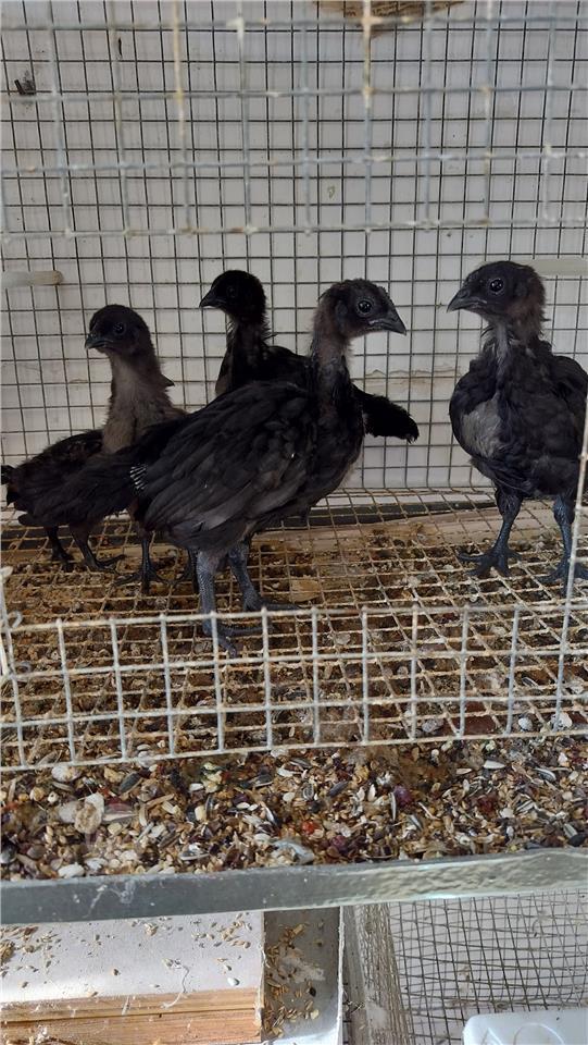 Flieles tal Ayam Cemani, tigieg suwed kompletament. Fir ritratt qed nuri il genituri Bhala referenza.