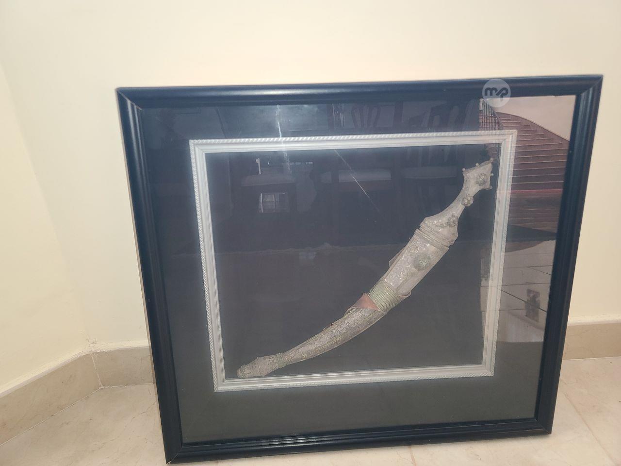 Display framed genuine Saudi Arabian tribal dagger and case hand made.