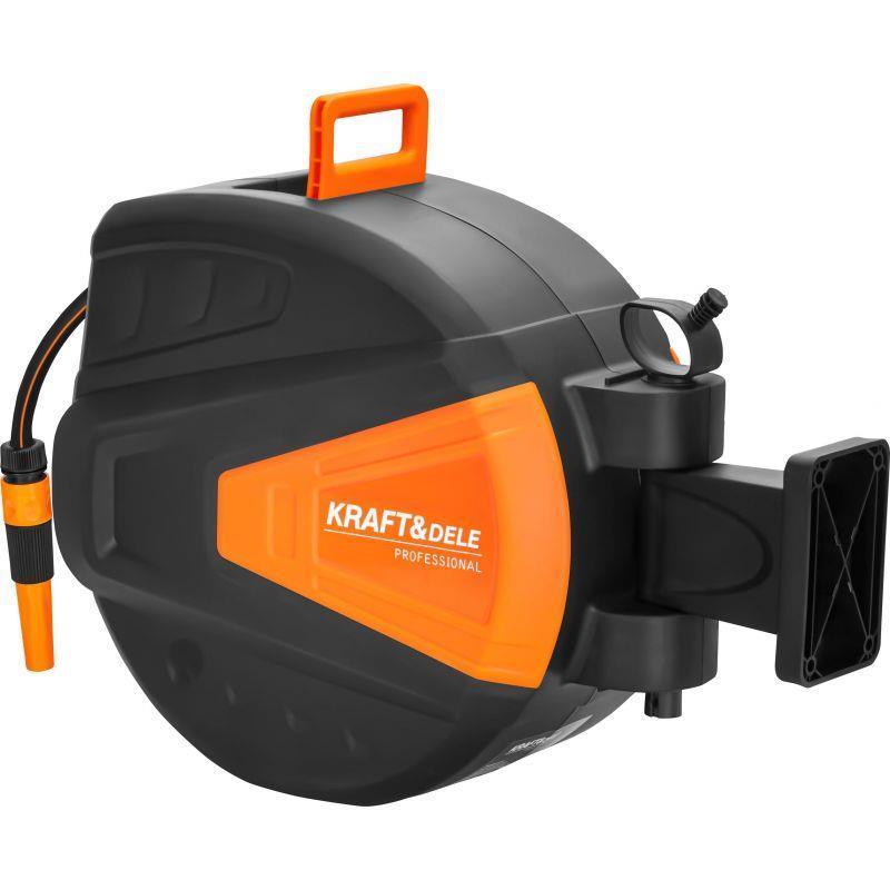The KD2153 is a functional automatic garden hose reel from KRAFT&DELE, designed for convenient and organized use in the garden. The automatic rewind system allows for quick storage of the hose without tangles or kinks, significantly improving the comfort of daily work.