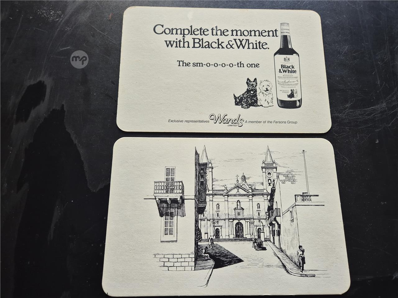 2 Vintage Black & White Whisky place mats