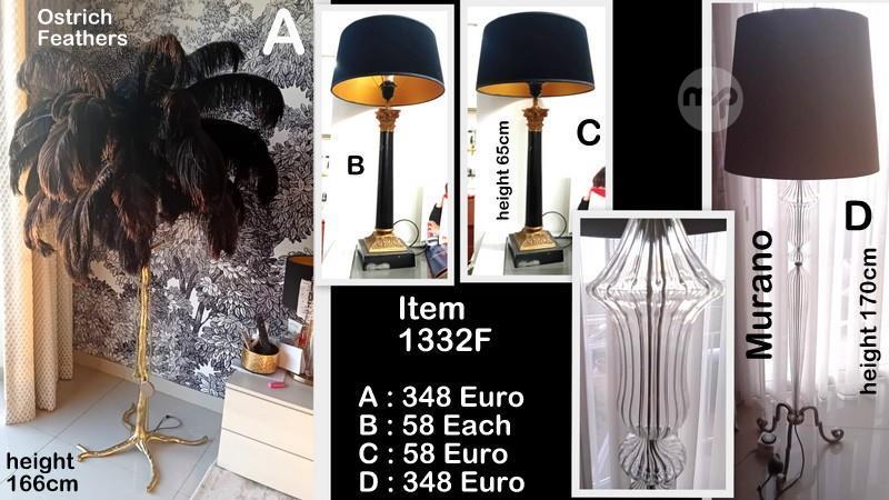 ( 1332F ) OSTRICH FEATHER FLOOR LAMP MURANO FLOOR LAMP TALL TABLE LAMPS