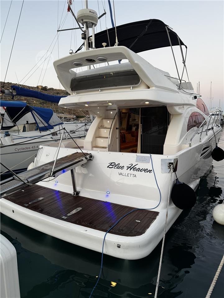 For sale is a beautiful 2004 Astondoa 43 GLX, featuring twin Volvo 430 HP engines with only 800 hours of use, ensuring reliable performance and efficiency. This yacht is in very good condition and comes equipped with a Mase 5kV generator for all your power needs. Master bedroom comes with en-suite and the second bedroom come ls with two single beds. Both airconditioned. Enjoy comfort on the water with two air conditioners to keep you cool, along with a stylish passarella for easy boarding. The elegant teak deck adds a touch of sophistication, while the full size fridge and 240V Mastervolt inverter provide convenience for all your outings.