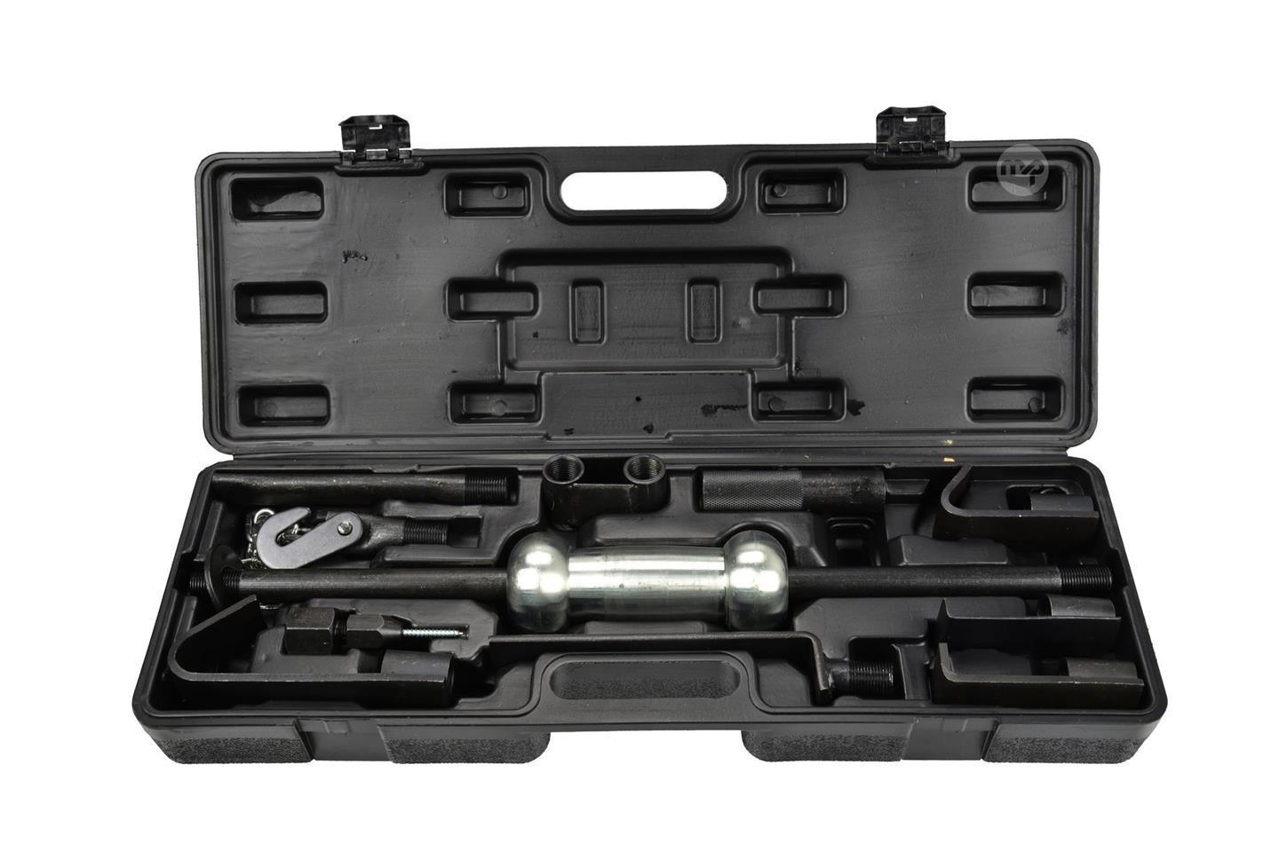 The set includes various grippers, mallets, and hooks for pulling and removing dents. It's the perfect bodywork repair kit, useful in any workshop.