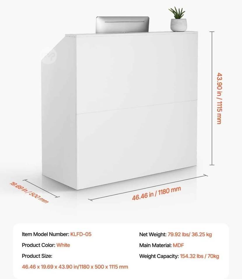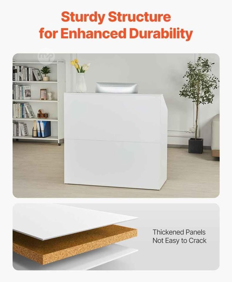 Rectangular Counter Table, Office Sales Table, Office Reception, for Cashier, Lobby, Beauty Salon, Easy to Install, White Colour.