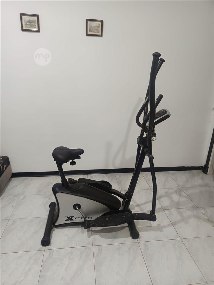 Hybrid elliptical trainer and upright bike