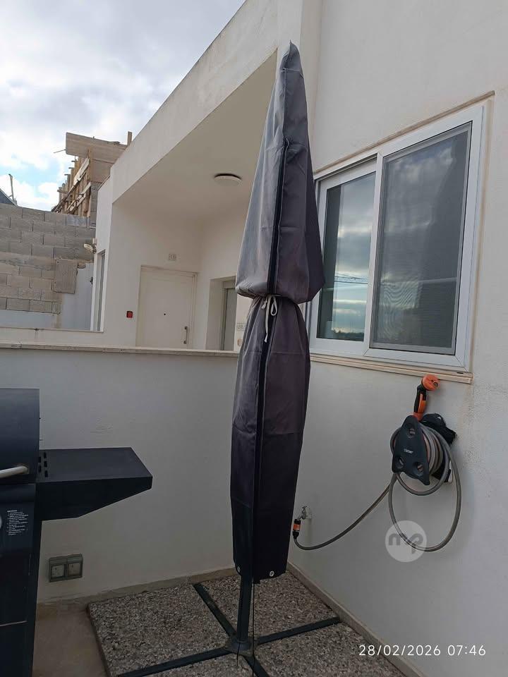 Gas BBQ with grill and plate + Umbrella with 4 concrete bases.