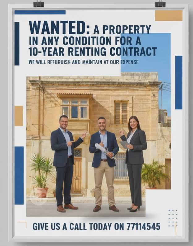 WANTED . Seeking HOUSE / TOWNHOUSE / MAISONETTE in South or Central Malta! We're on the hunt for a LONG-TERM RENTAL ✅ LONG LET: 10+ years commitment – stability you can count on!