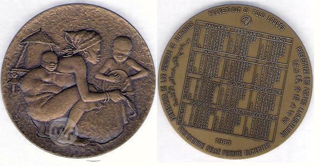MALTA F.A.O WORLD FOOD DAY 1983 LARGE MEDAL WITH A CALENDAR AT THE BACK.