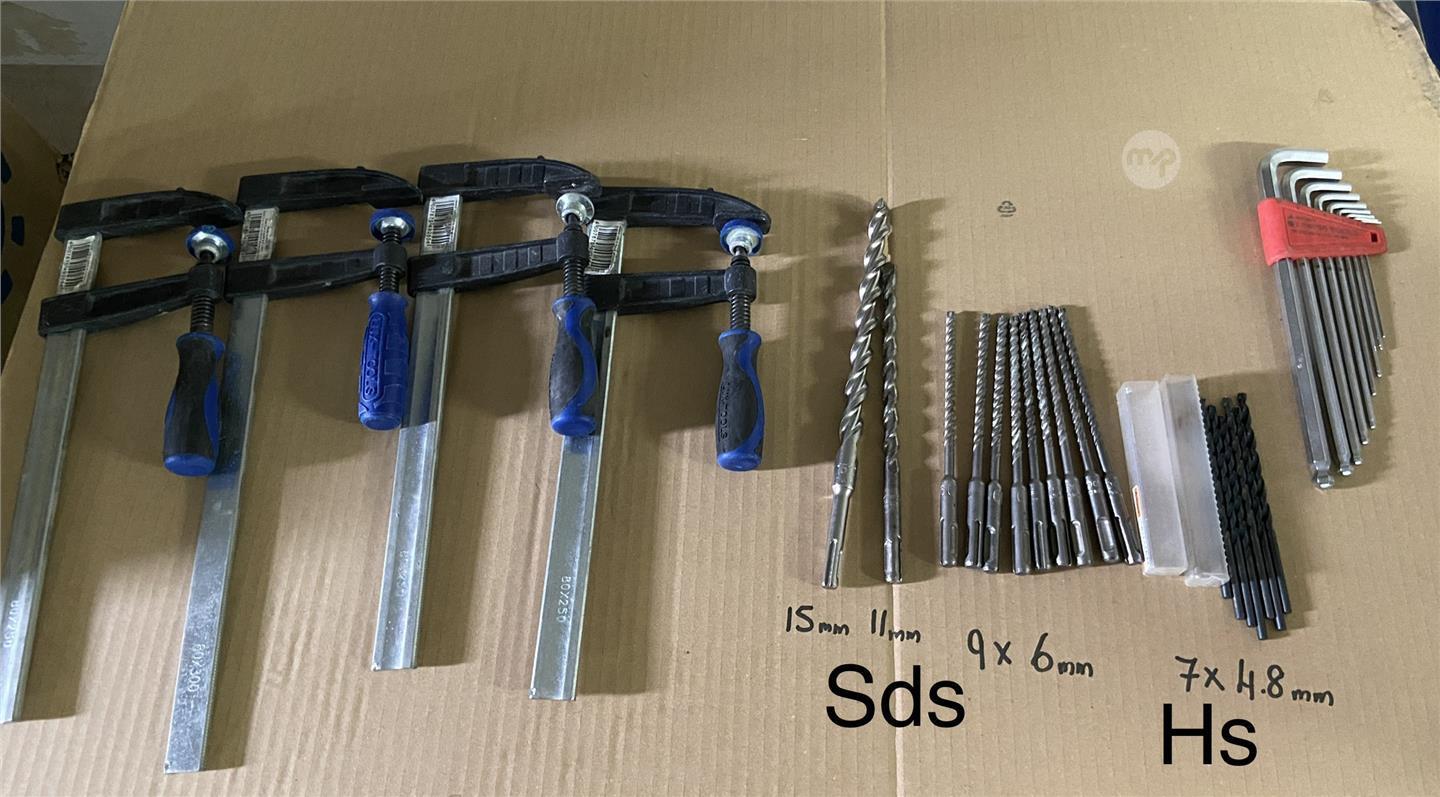 Sds and high speed tension drill bits and g clamps also a set of Allen keys