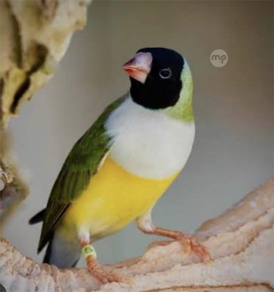 Gouldian finch with myopia or nearsightedness available for adoption.