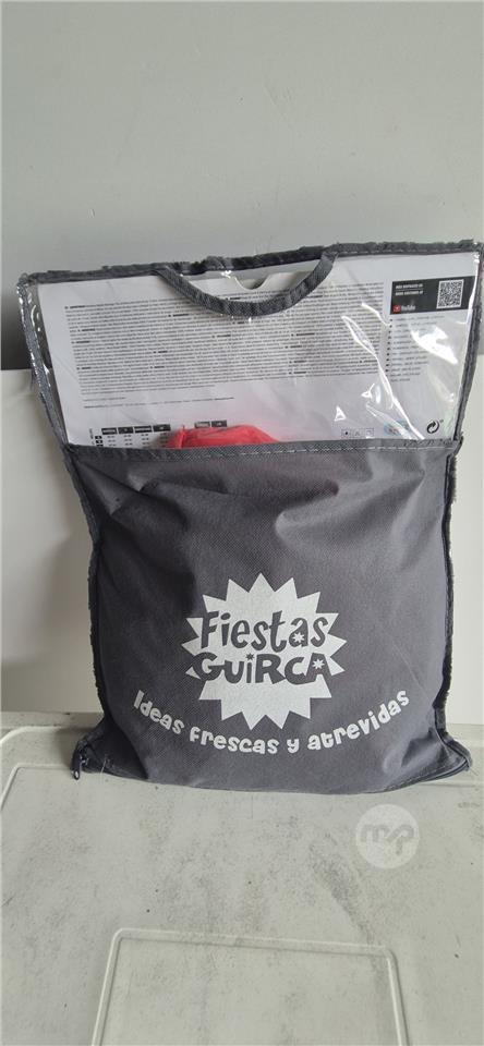 Red jumpsuit with belt and triangle sumbol .