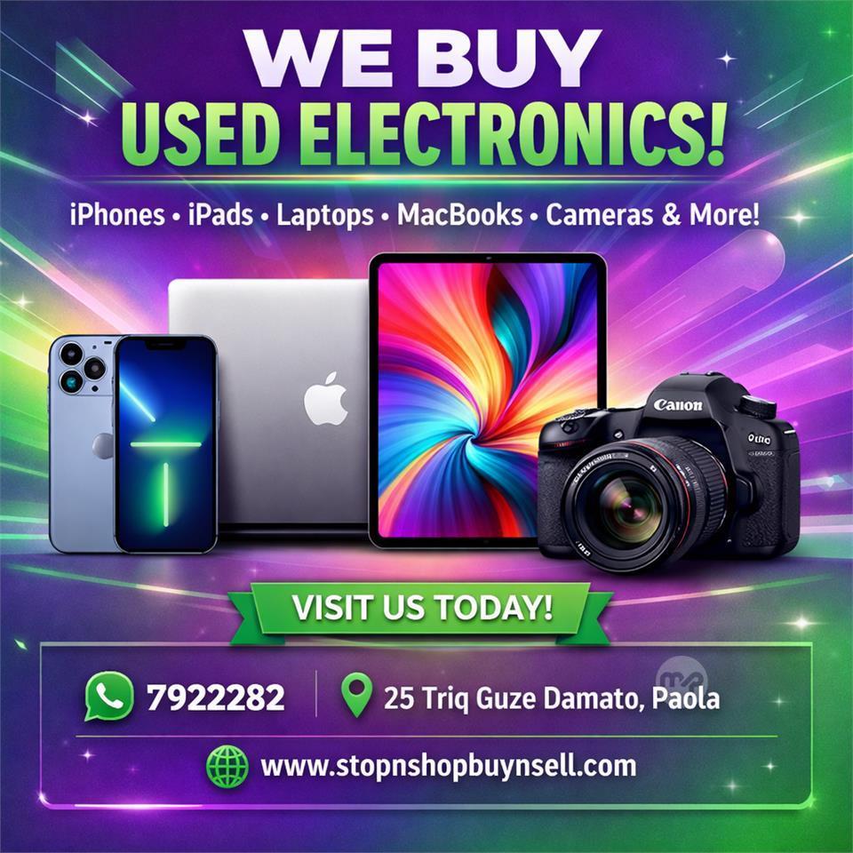 Looking to buy or sell used electronics? We deal in phones, laptops, cameras, iPads, MacBooks, PCs, and more! Whether you're upgrading your gadgets or looking for a great deal, we're here to help. Message us on WhatsApp +356 79222282 with what you're interested in buying or selling, and we’ll assist you every step of the way. Fast, reliable, and hassle-free!