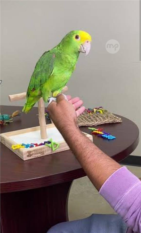 Young double yellow headed amazon with cites and rings