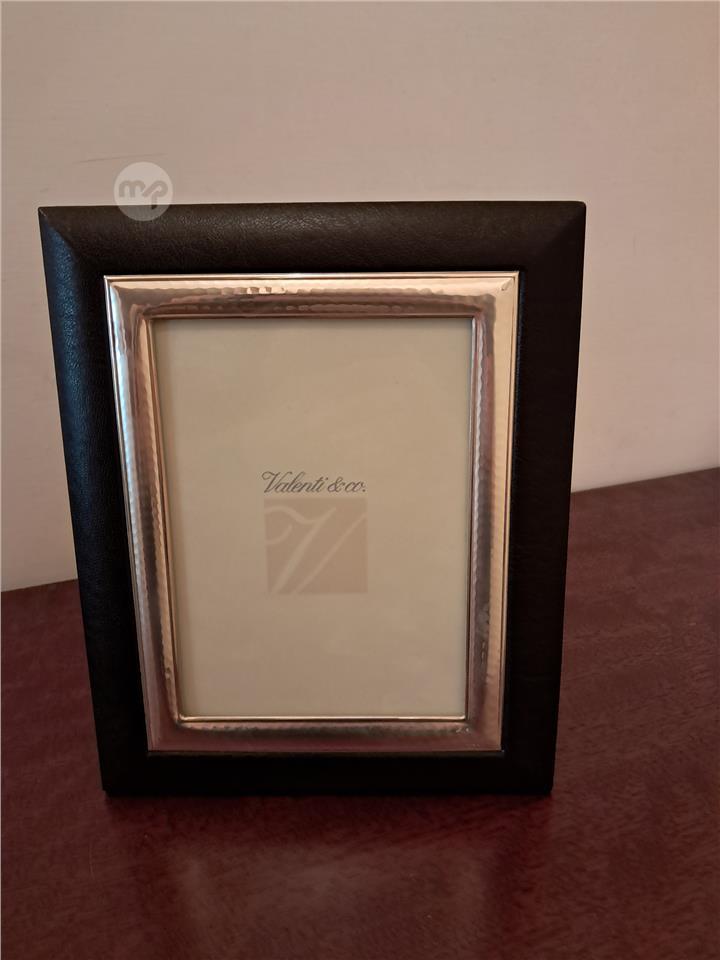 Valenti and Co photo frame featuring hammered Sliver texture set within a dark leather outer frame