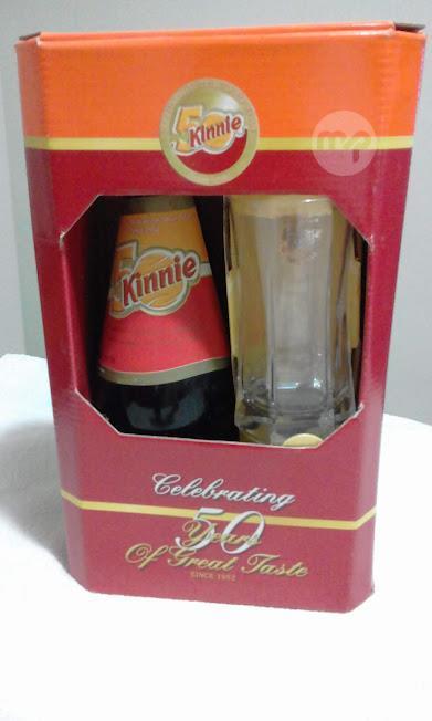 Kinnie 50 th anniversary pack consisting of a 75cl glass bottle of Kinnie and a decorative glass