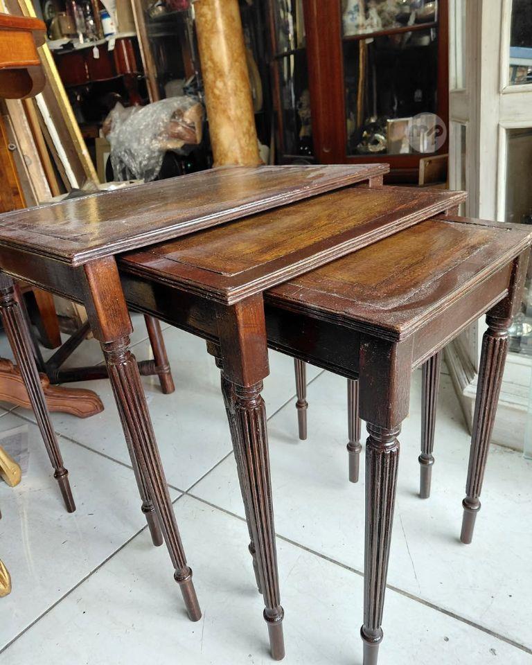 Set of 3 Mahogany Nest of tables Leather top Price of 90 euros set 99456526