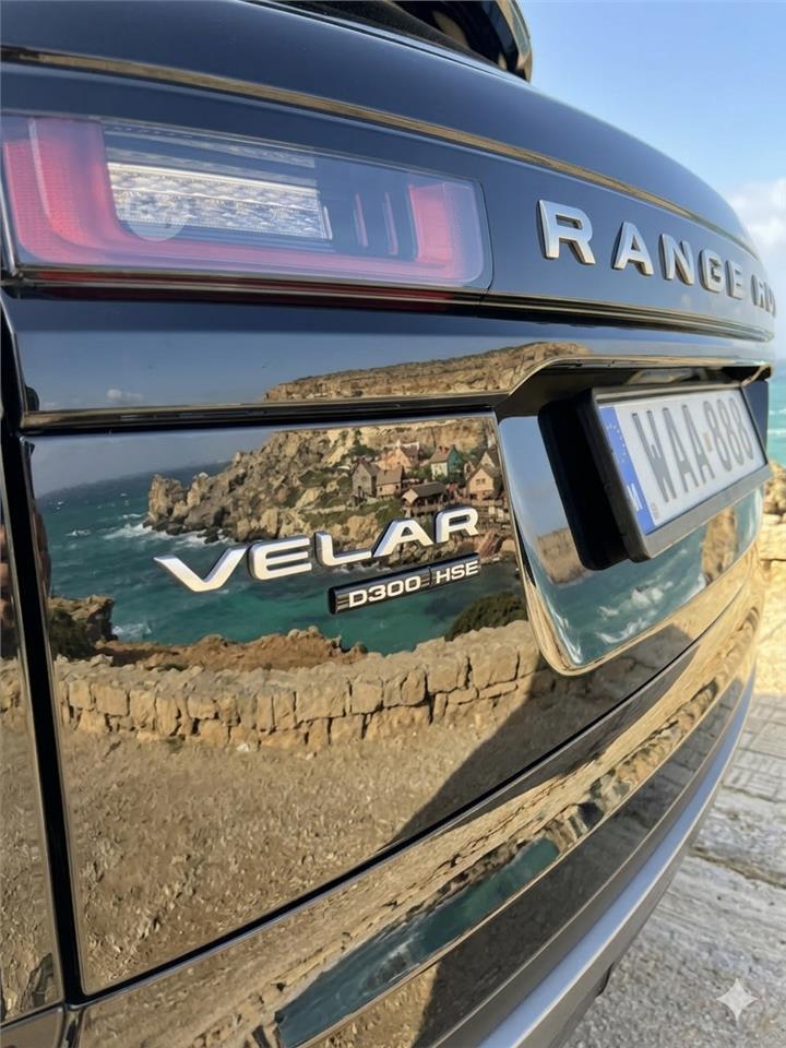 A new Range Rover Velar starts from €85,900 in Malta — and that's the base model with a 2.0L engine, grained leather and 19" wheels. This is a fully loaded HSE with the D300 engine, Windsor leather, air suspension, panoramic roof and Meridian sound — for €59,500.