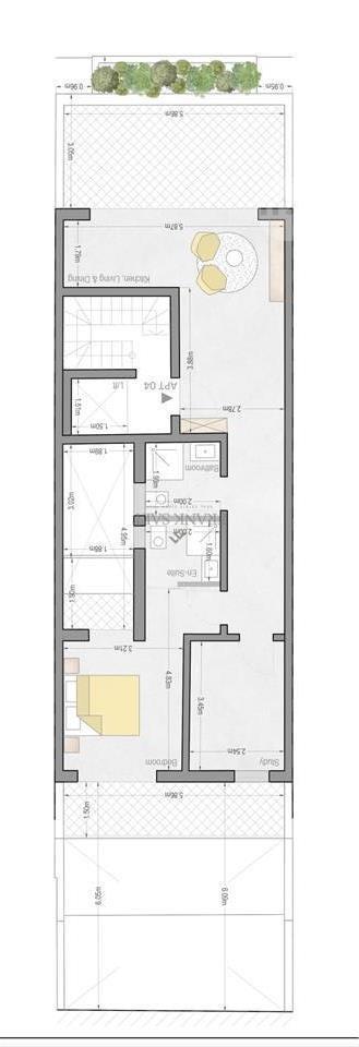 A PENTHOUSE with ownership of airspace in a very good location in Fgura. Layout consists of an open plan kitchen, living and dining leading on to a very spacious front terrace, main bathroom and ensuite, 2 bedrooms, back balcony and internal balcony. Property is being sold finished excluding doors and bathrooms. Freehold.