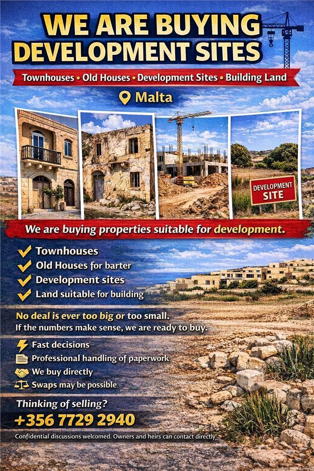We are currently seeking land, terraced houses, townhouses, airspace and old large houses to either buy directly or barter with property. We offer various deals where you can also keep a number of apartments from the site. Get in touch to talk details.