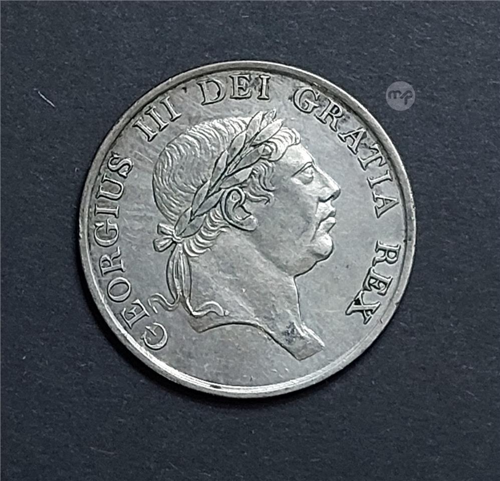 1814 Great Britain,, King George III 3 Shilling Bank Token, 0.925 Sterling Silver.