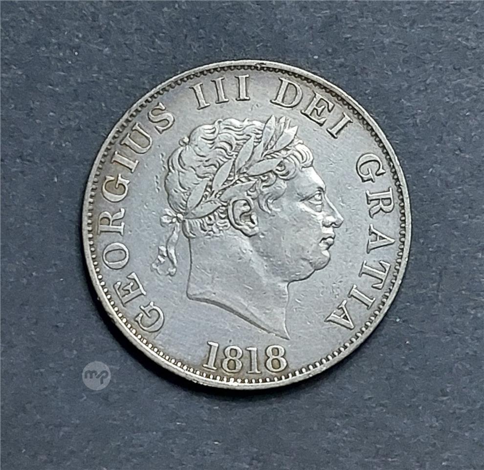 1818 Great Britain, King George III Half Crown 0.925 Sterling Silver Coin.
